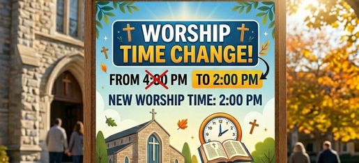 Effective from Sunday, April 19, our Church Service will begin at 2:00 PM.
